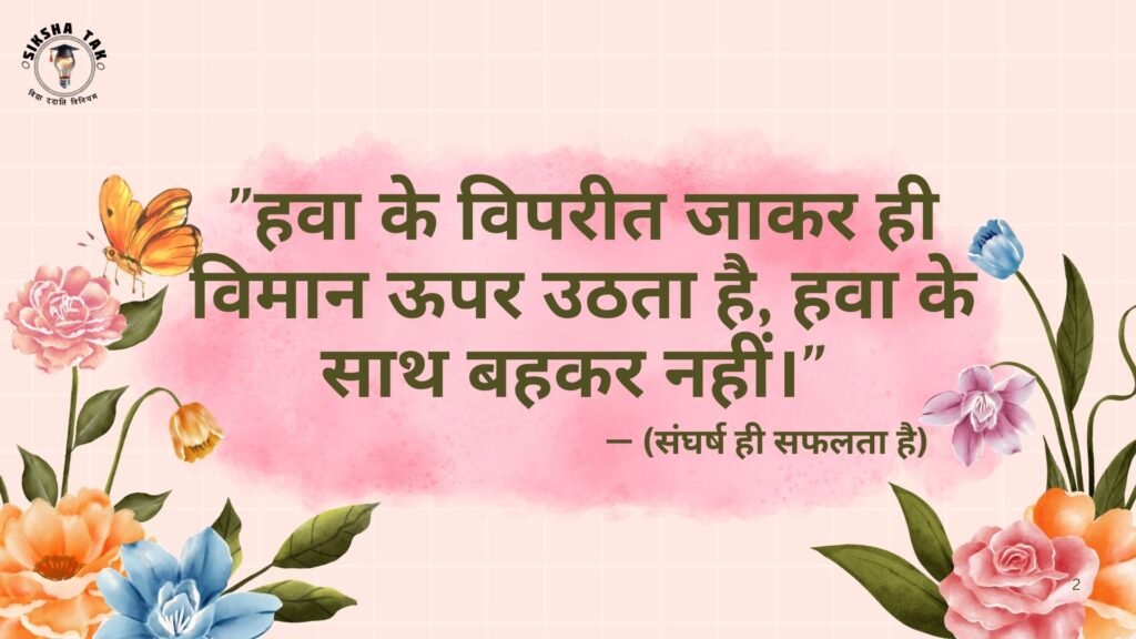 “हवा के विपरीत जाकर ही विमान ऊपर उठता है, हवा के साथ बहकर नहीं।” — (संघर्ष ही सफलता है)